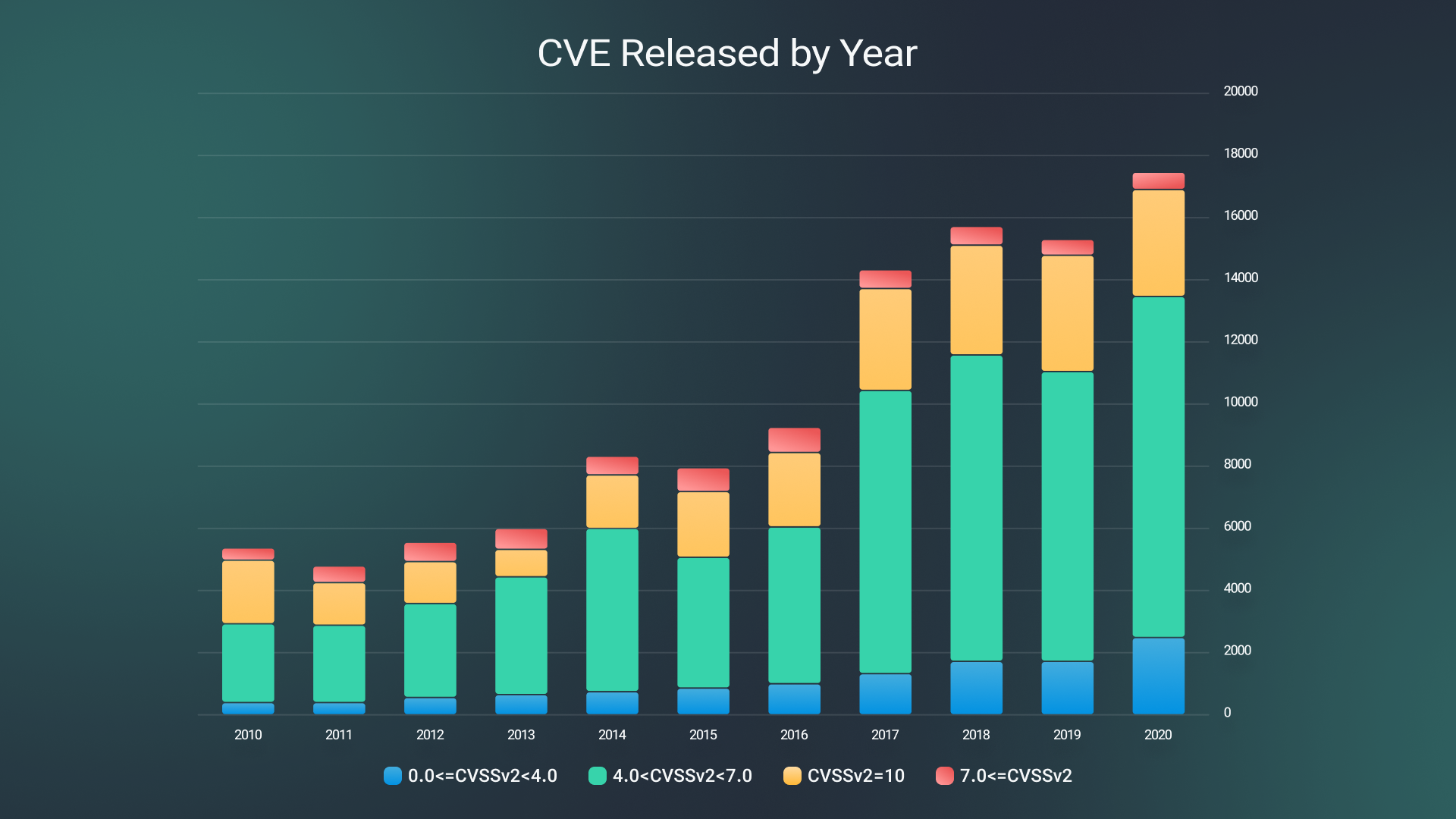 در طول ده سال گذشته، نرخ کشف آسیبپذیریها با سرعت زیادی در حال افزایش بوده است. در سال ۲۰۱۰، تعداد ۴,۹۹۲ آسیبپذیری (CVE) منتشر شد، در حالیکه این تعداد در سال ۲۰۲۰ به ۱۷,۲۵۳ مورد رسید؛ بیش از سه برابر. در نتیجه، امروزه سازمانها در هر اندازهای، ابزارهای اسکن آسیبپذیری را به مجموعه ابزارهای امنیتی خود اضافه کردهاند تا بتوانند شناسایی و مدیریت آسیبپذیریها را در زیرساخت خود انجام دهند.