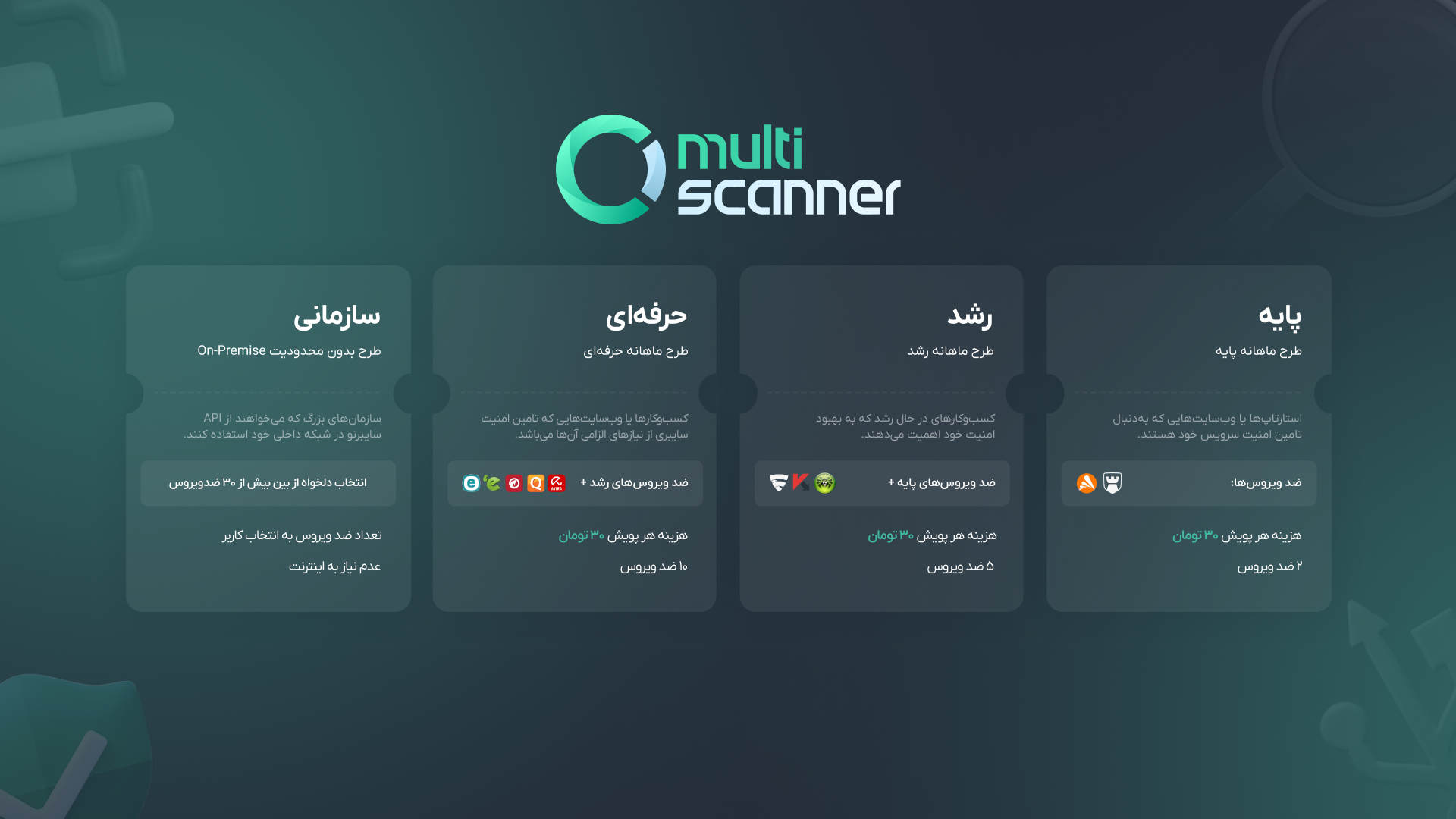 در نتیجه، شما میتوانید با انتخاب یکی از طرحهای پویشگر چندموتوره ابری سایبرنو، ضمن دسترسی به بالاترین سطح امنیت اطلاعات، هزینههای مربوط به مدیریت و نگهداری زیرساختهای امنیتی را به حداقل برسانید و از یک راهکار مقرونبهصرفه و پایدار بهرهمند شوید.