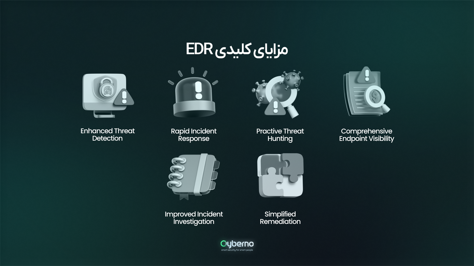 یک راهکار جامع EDR به تیم امنیت سازمان مزایای مهمی ارائه میدهد: